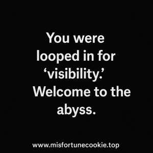 - “You were looped in for ‘visibility.’ Welcome to the abyss.”